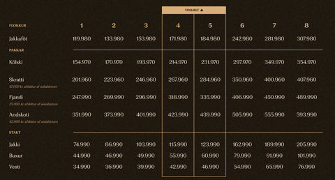 *Sérsaumuð föt þurfa að vera sótt hið minnsta 5 mánuðum frá mælingu annars áskilur Kölski sér rétt til að gefa fötin í hjálparstarfsemi. Viðskiptavinur greiðir sjálfur fyrir breytingar komi hann í mátun síðar en 3 mánuðum frá því að mælingar voru teknar.